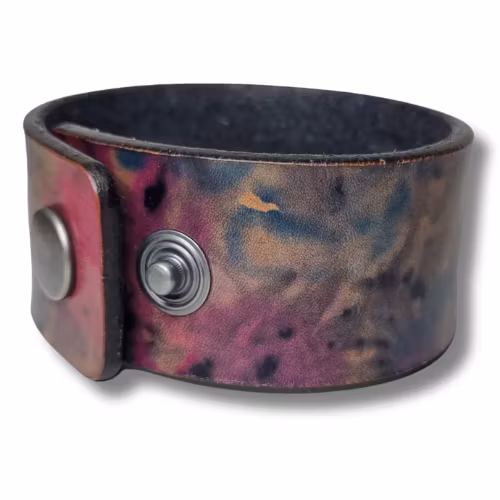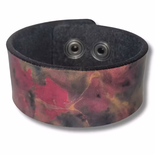 Armband, läder/marmorerat 349 kr Svartrosablåmarmorerat läderarmband med två tryckknappar som har ett innermått om ca 15-17 cm. I lager. Lägg i korgen Dela Lagersaldo: 1 Information Armbandet är ca 22x3 cm.