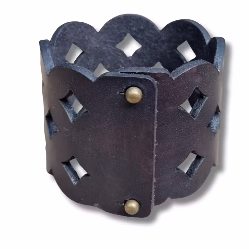 Armband, läder, diamanter/svart 499 kr Svarft läderarmband med ett innermått om ca 18 cm. Längd/bredd: ca 21*5 cm. I lager. Lägg i korgen Dela Lagersaldo: 2 Information Laserskuret läderarmband med två gevärsknappar.