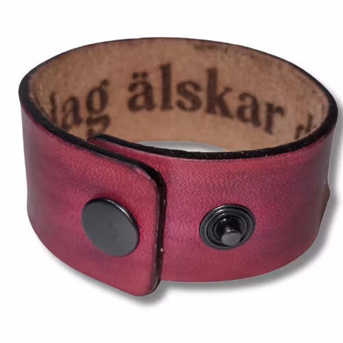Armband, läder med hemlig text 499 kr Med texten "Jag älskar dig!" på insidan. Armbandets innermått är ca 16-18 cm. I lager. Lägg i korgen Dela Lagersaldo: 1 Information Rosa läderarmband som mäter ca 22x3 cm och två tryckknappar.