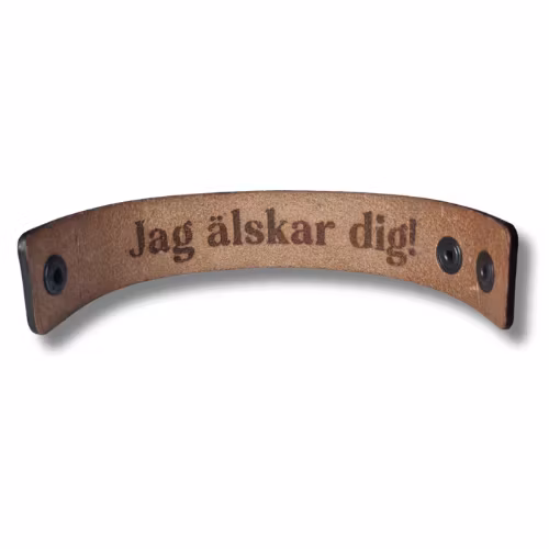 Armband, läder med hemlig text 499 kr Rödbrunmelerat läderarmband med hemlig text "Jag älskar dig!" i. Armbandet har två tryckknappar och ett innermått om ca 14-17 cm. I lager. Lägg i korgen Dela Lagersaldo: 1 Information Rakt rödbrunmelerat läderarmband med hemlig text i. Armbandet mäter ca 21 x 3 cm.