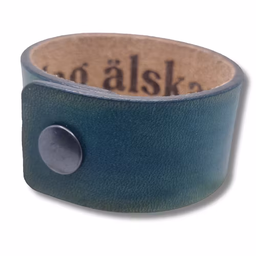 Armband, läder med hemlig text 499 kr Blågrönt melerat läderarmband med hemlig text "Jag älskar dig!" i. Armbandet är ca 15-17 cm i innermått. I lager. Lägg i korgen Dela Lagersaldo: 1 Information Rakt blågrönmelerat läderarmband med hemlig text i. Armbandet mäter ca 21 x 3 cm och har två tryckknappar.