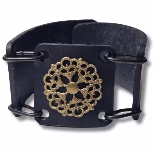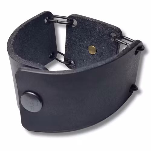 Armband, läder, 3-delat 399 kr Svart läderarmband med ett innermått om ca 18 cm. I lager. Lägg i korgen Dela Lagersaldo: 1 Information Laserskuret läderarmband i tre delar med en tunn metalldekoration. Armbandet är ca 22 x 4 cm med en tryckknapp.
