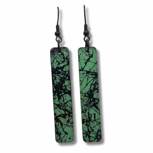 Örhängen, akryl/marmor, ljusgrön-svart 199 kr Mönstret är handgjort så alla örhängen ser lite olika ut. Svart baksida. I lager. Lägg i korgen Dela Lagersaldo: 2 Information Handmålade örhängen av akrylplast med svart fransk krok. Plattans storlek: B 1 cm, H 5 cm. Total längd ca 7,5 cm.