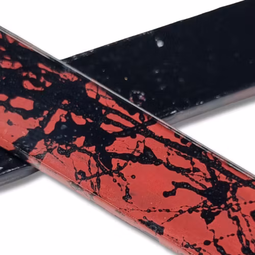 Örhängen, akryl/marmor, röd-svart 199 kr Mönstret är handgjort så alla örhängen ser lite olika ut. Svart baksida. I lager. Lägg i korgen Dela Lagersaldo: 1 Information Handmålade örhängen av akrylplast med svart fransk krok. Plattans storlek: B 1 cm, H 5 cm. Total längd ca 7,5 cm.