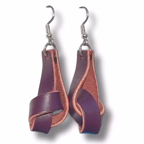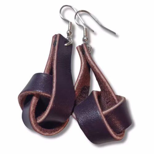 Läderörhängen, knut/brunlila 169 kr Mörklila med silverfärgad nickelfri fransk krok. längd*bredd= ca 6*2 cm. I lager. Lägg i korgen Dela Lagersaldo: 1 Information Örhängen av spillbitar av läder. För hål i öronen.
