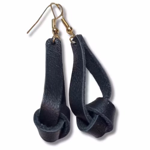 Läderörhängen, knut/svart 169 kr Svart med guldfärgad nickelfri fransk krok. längd*bredd= ca 5,5*2 cm. Produkten är tyvärr slut i lager. :( Dela Information Örhängen av spillbitar av läder. För hål i öronen.