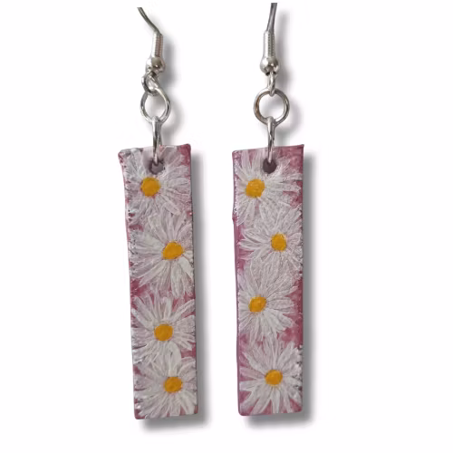 Örhängen, läder/handmålade blommor, rosa-vit 169 kr Örhängen med handmålade blommor. En del finns fler av, men eftersom alla är handmålade är inte två par likadana. Längd ca 7,5 cm, bredd ca 1 cm I lager. Lägg i korgen Dela Lagersaldo: 1 Information En liten läderbit, akrylfärger och en pensel har använts till dessa härliga blommönster. Silverfärgade nickelfria franska krokar.