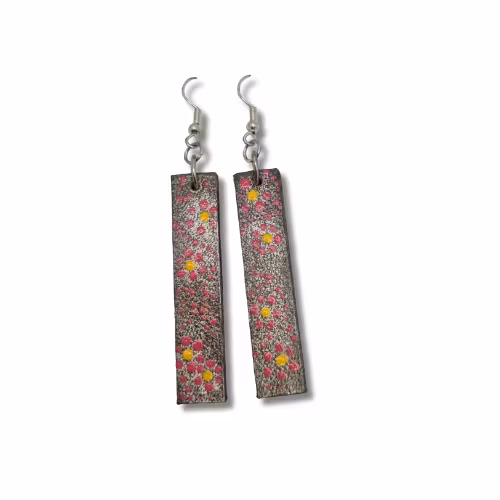 Örhängen, läder/handmålade blommor, svart-vit-rosa-gul 169 kr Örhängen med handmålade blommor. En del finns fler av, men eftersom alla är handmålade är inte två par likadana. Längd ca 7,5 cm, bredd ca 1 cm I lager. Lägg i korgen Dela Lagersaldo: 1 Information En liten läderbit, akrylfärger och en pensel har använts till dessa härliga blommönster. Silverfärgade nickelfria franska krokar.