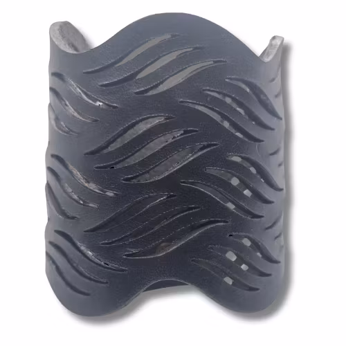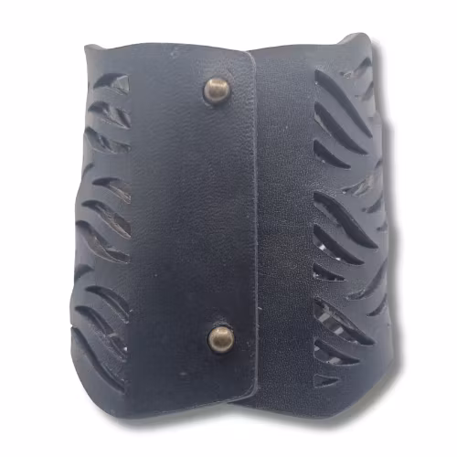 Laserskuret svart läderarmband, stängs med två gevärsknappar.