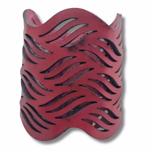 Armband, läder, vågor/mörkrödrosa 499 kr Mörkrött läderarmband med ett innermått om ca 16 cm. Armbandet är ca 19,5*8 cm. I lager. Lägg i korgen Dela Lagersaldo: 1 Information Laserskuret mörkrödrosa läderarmband, stängs med tryckknappar.
