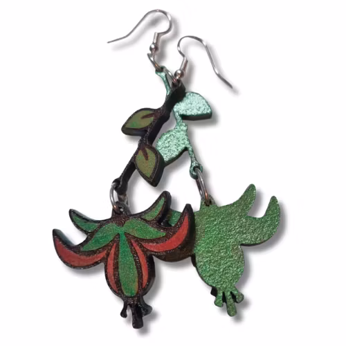 Örhängen, läder/blomma & stjälk 169 kr Handmålade blommor med grön baksida. Längd ca 8,5 cm, bredd ca 3,5 cm I lager. Lägg i korgen Dela Lagersaldo: 6 Information Två små laserskurna läderbitar, akrylfärger och en pensel har använts till dessa stiliga blommor. Silverfärgade nickelfria franska krokar.