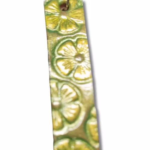 Örhängena är i läder och har silverfärgade nickeltestade franska öronkrokar. Blommorna är handmålade i gröngult på gröngul botten. De är perfekta för ge dig en fin touch till din outfit.