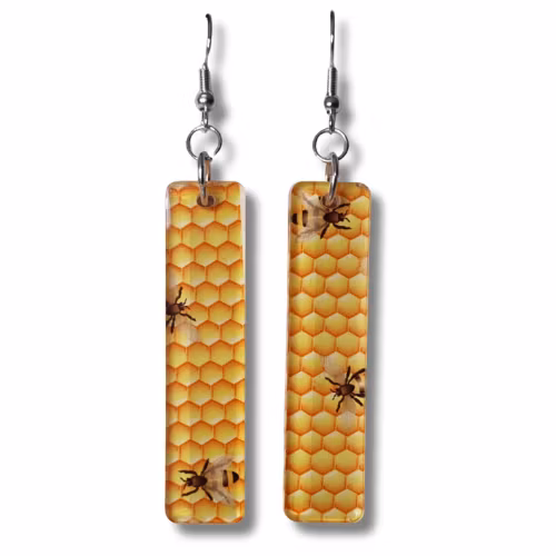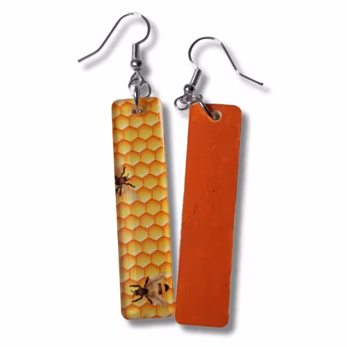 Örhängen, akryl/bin 159 kr Plattans storlek: bredd ca 1,2 cm, höjd 5 cm. Total längd ca 7 cm I lager. Lägg i korgen Dela Lagersaldo: 6 Information Örhängen av akrylplast med tryckt djurmönster och handmålad enfärgad baksida. Silverfärgad fransk krok.