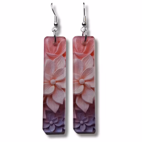 Örhängen, akryl/blommor, rosa-lila 159 kr Plattans storlek: bredd ca 1,2 cm, höjd 5 cm. Total längd ca 7 cm I lager. Lägg i korgen Dela Lagersaldo: 1 Information Örhängen av akrylplast med tryckta blommor och handmålad enfärgad baksida. Silverfärgad fransk krok.