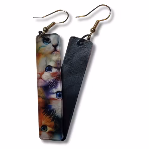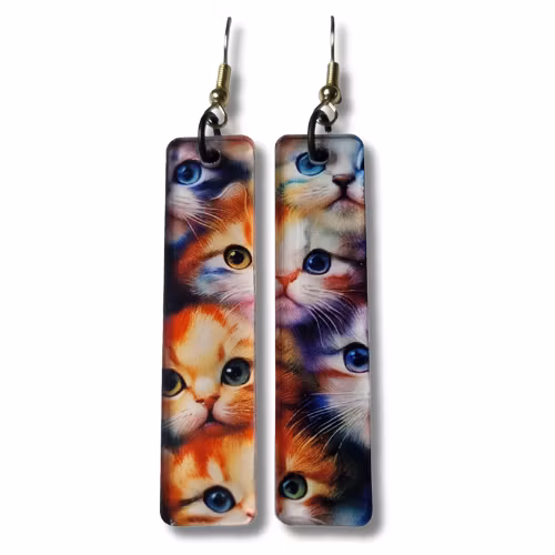 Örhängen, akryl/kattungar 159 kr Plattans storlek: bredd ca 1,2 cm, höjd 5 cm. Total längd ca 7 cm I lager. Lägg i korgen Dela Lagersaldo: 3 Information Örhängen av akrylplast med tryckt mönster och handmålad enfärgad baksida. Guldfärgad fransk krok.