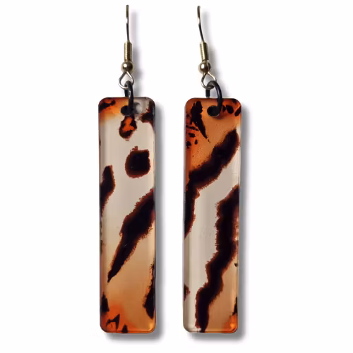 Örhängen, akryl/lejon 159 kr Plattans storlek: bredd ca 1,2 cm, höjd 5 cm. Total längd ca 7 cm I lager. Lägg i korgen Dela Lagersaldo: 5 Information Örhängen av akrylplast med tryckt djurmönster och handmålad enfärgad baksida. Guldfärgad fransk krok.