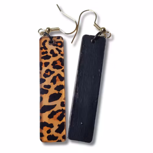 Örhängen, akryl/leopard, brunorange botten 159 kr Plattans storlek: bredd ca 1,2 cm, höjd 5 cm. Total längd ca 7 cm I lager. Lägg i korgen Dela Lagersaldo: 5 Information Örhängen av akrylplast med tryckt djurmönster och handmålad enfärgad baksida. Guldfärgad fransk krok.